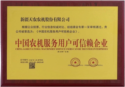 中國農(nóng)機服務(wù)用戶可信賴企業(yè)